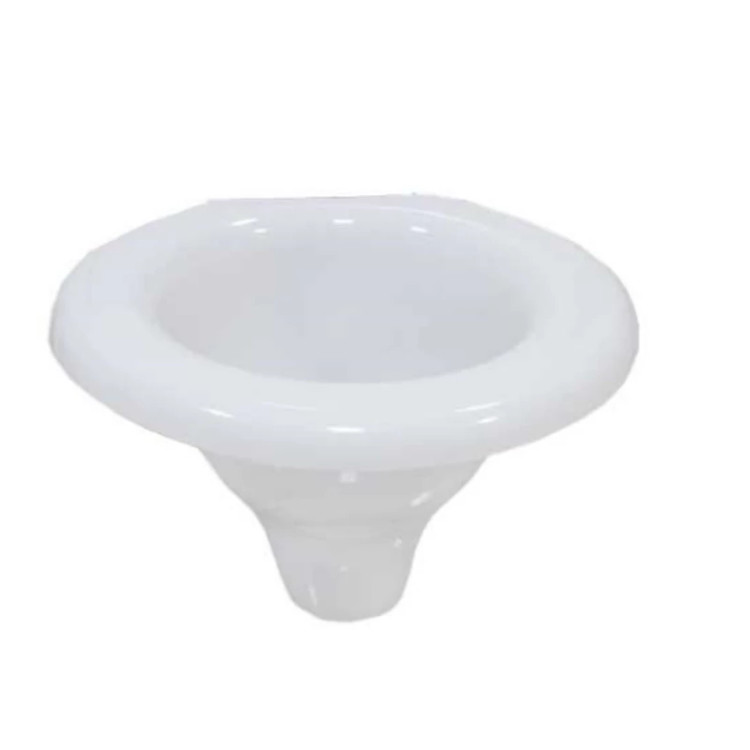 قیف یدک توالت فرنگی مدل ته باز ، سیستم تخلیه گردابی ، حجم اب مصرفی در هر تخلیه 3 لیتر است .