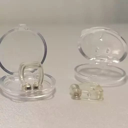 گیره ضد خروپف یا گیره بینی ( Nose clip ) وسیله ای سیلیکونی ساده است که در ورودی بینی قرار گرفته و دارای دو مگنت میباشد که با وارد کردن فشار به سپتوم بینی، مسیر عبور جریان اکسیژن را باز نگه داشته و به تنفس بهتر در طول شب کمک می کند. گیره بینی بعنوان یکی از ابزار های درمان خروپف مورد استفاده قرار میگیر
