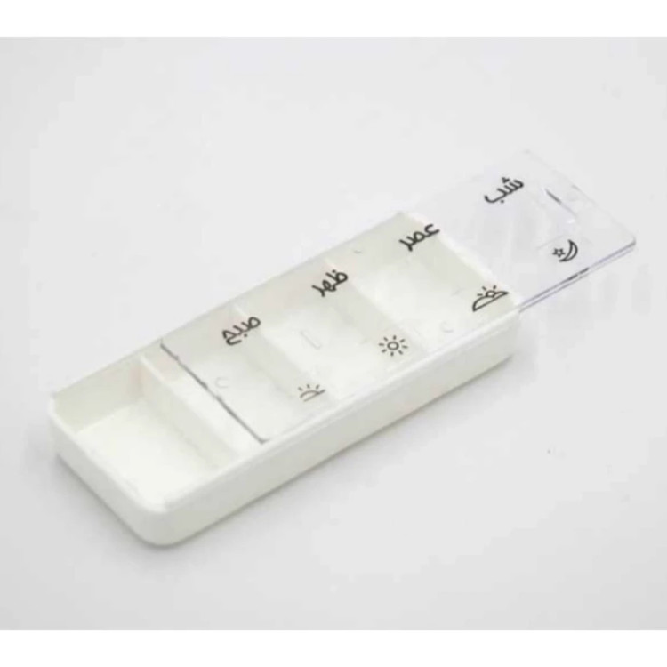 ظرف دارو روزانه به شما کمک میکند که داروهای تجویز شده توسط پزشک را به موقع و در زمان مشخص در طول روز مصرف کنید. تنها کافی است که درب ظرف را باز کرده و قرصها را به ترتیب مصرف آنها در طول روز یعنی صبح، ظهر، عصر و شب قرار دهید.