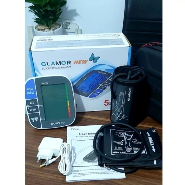 یکی از خطراتی که همیشه سلامتی انسان را تهدید می کند داشتن فشار خون بالا یا پایین است.فشارسنج دیجیتالی بازویی گلامور خیال شما را از لحاظ داشتن فشارسنجی بادقت و با کیفیت راحت می کند.این مدل فشارسنج تکنولوژی MWI را دارا می باشد و از فشار باد بیهوده و ایجاد درد در بازو جلوگیری می کند.فشارسنج گلامور برند آلمان است که کاملا از لحاظ دقت و کیفیت در رتبه های اول دنیا می باشد. این مدل فشارسنج دارای تاییدیه ی سازمان جهانی بهداشت(WHO)می باشد و به میزان 250 عدد نوبت اندازه گیری برای هر نفر را ذخیره می کند.این فشارسنج دو کاربره بوده است و می تواند فشار اندازه گیری شده را در 2 حافظه مختلف ثبت کند.همچنین دارای صفحه نمایش با رنگ آبی می باشد که خواندن اعداد اندازه گیری شده را راحت تر می کند. بازوبند(کاف) دستگاه دو سایز مختلف دارد که هم برای افراد معمولی و افراد چاق قابل استفاده می باشد. در داخل دستگاه آداپتور مخصوص وجود دارد که بدون نیاز به باطری هم می تواند کار کند. نحوه بستن کاف باید به گونه ای روی بازو بسته شود که از خم شدگی آرنج یک یا دو سانتی متر بالا تر باشد و شلنگ بازوبند به سمت پایین بسته شود.موقع اندازه گیری فشارخون بهتر است که کاربر قبل از آغاز اندازه گیری سه الی چهار دقیقه نشسته باشد. فشارسنج TMB-1112NEW سیستم تشخیص آریتمی قلب را دارد که در صورت نامنظم بودن ضربان قلب به کاربر اطلاع می دهد.در داخل صفحه نمایش خط نواری میزان فشارخون را دارد که با چهار رنگ سبز-زرد-نارنجی و قرمز قابل مشاهده است و با فلش محدوده ی فشار خون را نیز مشخص می کند. داخل جعبه فشارسنج گلامور دو عدد بازوبند(فنری و ساده) کیف ضد ضربه قابل حمل و آداپتور وجود دارد. این دستگاه قابلیت کار با 4 عدد باطری آلکالاین را نیز دارد. این مدل فشارسنج قابل استفاده در منزل مطب پزشکان و کلینیک می باشد.از ویژگی های این دستگاه می توان به اندازه گیری دقیق فشار خون به صورت دیجیتالی، نمایش ضربان قلب، نشانگر میزان مصرف باطری و خاموش شدن خودکار در صورت عدم استفاده نام برد. این دستگاه میزان نبض را از 40 ضربه تا 199 ضربه در دقیقه، میزان فشار خون را از 30 تا 250 میلی متر جیوه نشان می دهد.