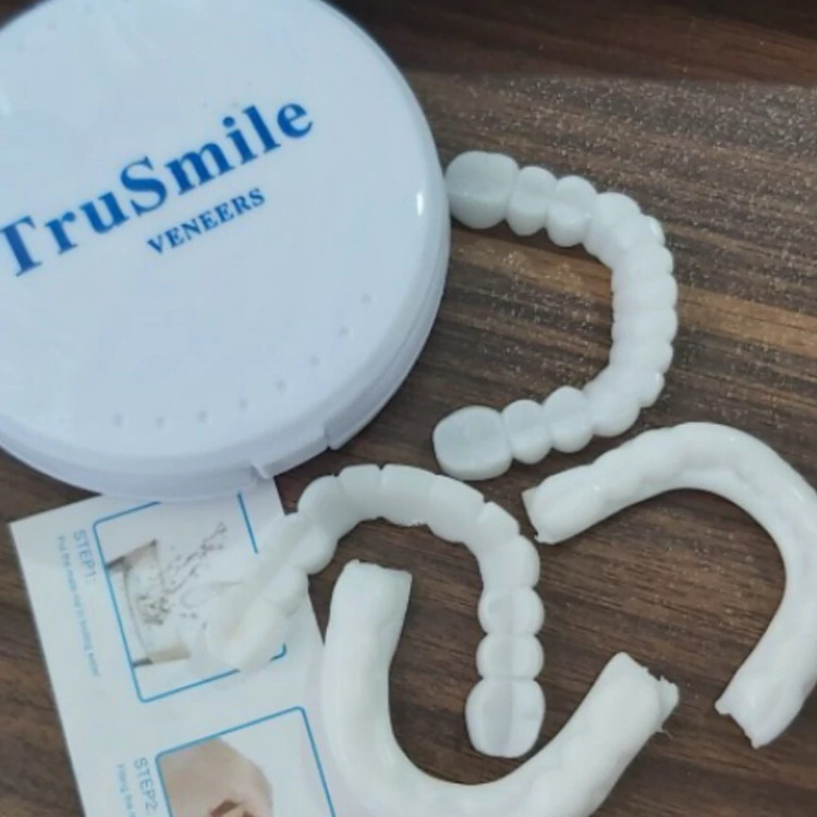 لمینت متحرک دندان ترو اسمایل trusmile برای دو فک برای زیبایی سریع و پر کردن جای خالی دندان ها مناسب است و به عنوان پلاک موقت یا روکش دندان به کار می رود و قابلیت جدا شدن راحت و گذاشتن خیلی آسون دوباره لمینت روی دندانها را دارد
