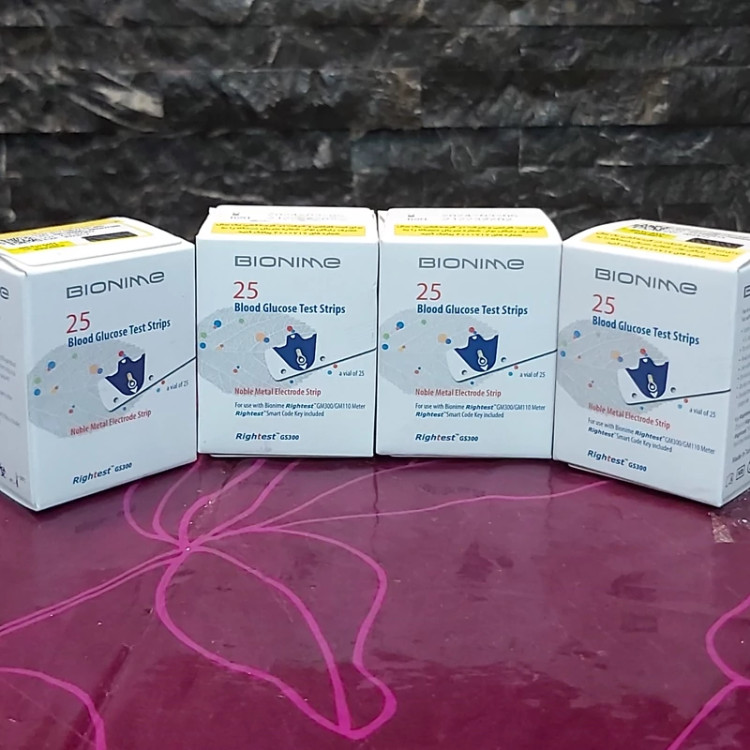 نوار تست قندخون بایونیم تولید کشور تایوان است. که تعداد این نوارها در هر بسته بندی شامل 25 عدد نوار می باشد. برای انجام تست نیاز به ۱.4 میکرو لیتر خون است. دارای سامانه کد دهی خودکار برای کارایی بهترآن است. این نوار مناسب دستگاه های قندخون مدل های GM110 و GM300 می باشد. نوار تست قندخون بایونیم مدل GS 300 دارای فناوری Patent می باشد. با بیشترین میزان رسانایی الکتریکی و اثر کاتالیزوری عمل می کنند. کمپانی بایونیم با به کارگیری دانش های مختلف در زمینه هایی مانند مهندسی شیمی، مکانیک و ابزار دقیق که سری جدید دستگاه اندازه گیری GM110/300 Rightest (شامل دستگاه قندخون و نوار تست) را با دقت اندازه گیری بالا ارائه داده است.